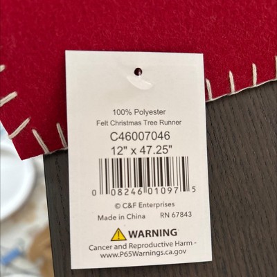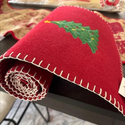 - This 12" x 47.25" Christmas tree felt table runner blends classic holiday motifs with soft felt texture. Its charming cutout pattern and fine craftsmanship make it a standout accent for your dining or buffet table throughout the holiday season.