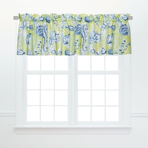 The Fenwick Isle Gray ruffled valance makes it easy to bring touches of ocean waves and sun-drenched beaches into your home. With iconic shell, starfish and seahorse motifs, this soothing grayscale print is the perfect accent for your modern coastal kitchen, breakfast nook or your favorite seaside vacation retreat. This ruffled unlined valance is light filtering with a 2-inch rod pocket and a 1-inch decorative header. Crafted of cotton, machine wash and tumble dry low for easy care. Love this pattern? Fenwick Isle Gray is also available in our bedding and tabletop collections. Each valance is 72" wide, hanging rod not included.