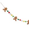 - Features five classic gingerbread man shapes accented by green, red, white, yellow, and light green pom poms placed between each figure, creating a festive Christmas look that feels playful yet polished and adds visual rhythm across mantles, doorways, or stair rails.