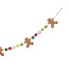Decorate for the season with this Christmas gingerbread man felt garland featuring five festive figures and colorful pom pom accents. Measuring 59 inches long, it is perfect for mantles, doorways, stair bannisters, and cozy holiday home styling.