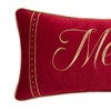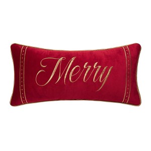 Add festive elegance to your home with this red mini Christmas accent pillow featuring gold embroidered "Merry" lettering. Made from 100% polyester, it is perfect for layering on sofas, chairs, beds, or shelves and makes a charming seasonal gift.
