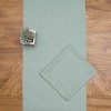 This solid sea glass green table runner features a classic hemstitch border and 100 percent cotton construction. Measuring 14 x 72, it adds a clean coastal touch to dining tables, consoles, or sideboards for spring, summer, and everyday use.