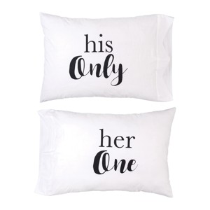 Whether you're "her one" or "his only," you can snuggle up in comfort and style with these heartfelt and contemporary 100% cotton pillow cases. This matching case set makes the perfect engagement or wedding gift and will send a new couple off to their home or honeymoon in style.