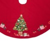 - Crafted from 100% cotton, this red Christmas tree skirt features a timeless, festive look that complements any holiday décor. The soft fabric drapes beautifully beneath your tree, creating a cozy and polished foundation for gifts and gatherings.