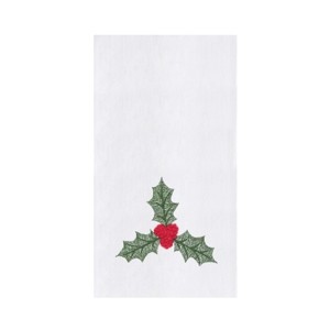 Featuring a single holly berry and leaves, this beautiful French knot Holly Kitchen Towel is in the center of a crisp white background. The delicate design brings a classic holiday look to any kitchen, perfect for celebrating the season. Both functional and decorative, this towel adds a touch of festive elegance to any kitchen.