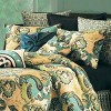 Create the bedroom you've been dreaming of with the Kasbah bedding collection. A large scale paisley design comprised of dramatic blues, teals, and greens, atop a beige ground lends a peacock inspiration to your decor. Reverse to a an allover blue on beige lattice pattern for additional styling options. Crafted of 100-percent cotton with polyester/cotton blend filling for loftiness, the Kasbah bedding collection is machine washable for easy care. Coordinating euro shams, accent pillows and bed skirt available separately.