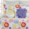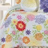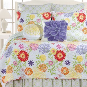 Live happy in the bright, cheerful pattern of the Lilly bedding collection. Vibrant pink, purple, yellow, and orange flowers in all shapes and sizes stand out against a fresh, white ground. Reverse to a green-on-white bohemian medallion print for an alternate look. Perfect for your vibrant bedroom, the accessorizing options are endless! Made of 100% cotton and machine washable for easy care. Complete your bedroom with coordinating accent pillows, euro shams and bed skirt available separately.