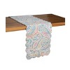 Displaying a large-scale paisley pattern in blues and mauve paisley motifs, the Maisie tabletop collection will freshen up your dining table with a splash of color. Finished with a floral medallion stitching design and reversible to a coordinating striped pattern, the Maisie is easily accented with pops of surf, teal, and green. Crafted of cotton this table runner is machine washable for easy care.