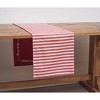 - Ideal for kitchen, dining room, or buffet tables, this reversible table runner transitions beautifully from casual breakfasts to formal holiday dinners. Its dual-sided design lets you switch from script to stripes for effortless style variety.