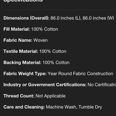 Website description says this quilt is 100% cotton inside out all around and when it arrived it’s tag states otherwise wise. I was really looking forward to finally having a cotton quilt so this was disappointing. If you don’t care about material it’s a pretty Blanket otherwise. Please fix web description.