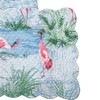 Transform any tabletop into a beach paradise with the coastal-inspired Paradise Coast tabletop collection. It features flamingos in tropical blue and pink hues and a natural feel, making it the perfect choice to bring a relaxing atmosphere to any space. The scallop-edge table linens reverse to a simplistic diamond design in a coordinating blue. Available as a napkin, placemat, round placemat, and runner. Love this pattern? Paradise Coast is also available as a bedding collection.