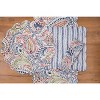 For a vibrant and stylish addition to any space, Payton Paisley table linens burst with a lively array of colors, including the matching reversible napkin. The captivating watercolor paisley design in blue, red, green, yellow, and white exudes energy and personality for a one-of-a-kind piece of art. Reverse to a charming watercolor stripe pattern created with a variety of playful dots and dashes in agreeable shades of blue for more styling options. Love this look? Payton Paisley is also available as a bedding collection.