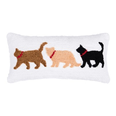 Showcase your love for cats with the Pets Trio Hooked Pillow. These charming pillow features three playful kitties and puppies prancing in a row, making it a delightful accent for any cat or dog lover’s home or a fun addition to everyday décor. Great for casual everyday living, these pillows will bring the best in simple life day after day.