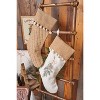 - Featuring a soft white body, beige cuff, and playful pom pom accents, this stocking blends rustic farmhouse charm with a peaceful winter look, making it an easy match for classic, neutral, or nature-inspired Christmas decor themes.