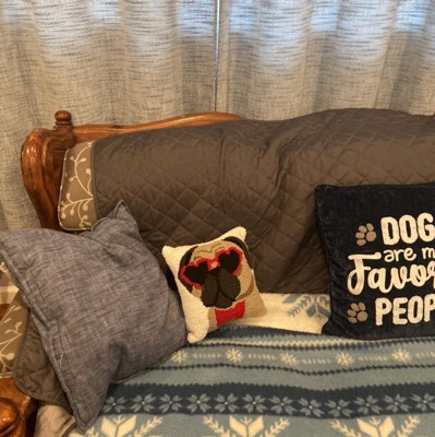 This 12" x 12" hooked pillow features an adorable "Pugs & Kisses" design with cute pugs and hearts. Perfect for adding a touch of Valentine's Day charm to any room. Makes a fun and unique gift for dog lovers!
