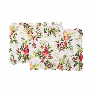 The Ruby Cardinal quilted tabletop collection is the perfect way to bring some winter season cheer into any home. The scalloped-edge table linens feature a sprightly red and yellow cardinal pattern on holly leaves, plus a reversible tossed holly berry pattern for twice the fun. Get ready to cozy up and make Christmas memories you won't forget! Love this pattern? Ruby Cardinal is also available as a bedding collection.