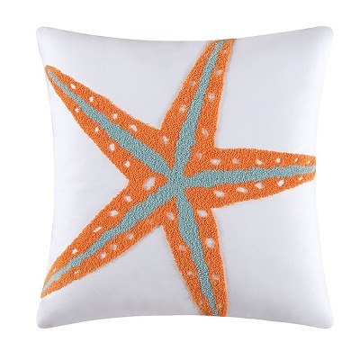 You don’t have to live by the sea to enjoy the coast. Indulge in the pleasures of the beach with the Salty Kisses and Starfish Wishes embroidered pillow. Featuring seafoam and coral embroidery on a pearly white background, this understated accent will supplement any home style or complete your coastal paradise. This fun, beachy pillow also makes a wonderful gift. Finished with a contrasting piped edge and secured with a zipper closure. Crafted with a cotton cover and removable polyester insert for easy care. Spot cleaning recommended.