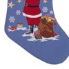 - Featuring a beautifully embroidered Santa Claus holding a red cardinal on a blue base with a classic red cuff, this stocking captures the essence of Christmas cheer. The intricate stitching and vivid colors create a timeless decorative piece for your home.