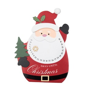 Standing Santa Claus advent countdown calendar, MDF construction, 9.5 inches tall. Charming tabletop decor for mantles, coffee tables, kitchens, and dining areas. A festive way to track days to Christmas and a thoughtful seasonal gift for holiday homes.
