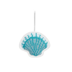 Bring a touch of the sea to holiday decorating with a charming faux needlepoint ornament, designed with coastal details that offer a nostalgic old school handmade look. The Shell Ornament adds a subtle coastal touch to holiday decor by embracing the essence of the shore with this classic shell shape.