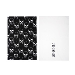 - Featuring a bold skeleton skull motif in a clean black and white palette, these dishtowels bring stylish seasonal charm to your kitchen, combining fun holiday character with versatile neutral tones that complement a variety of décor themes.