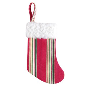 Get creative with your holiday festivities with our hand crafted mini Stripe Stocking. A festive red with bright green and red stripes polished off with a white cuff. It is the perfect size for candy canes, your silverware at a holiday party, a tree ornament or even as an embellishment on Christmas gift wrapping.