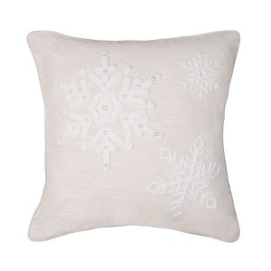 C&F Home White Snowflakes w/ Pearl Beads Cotton Blend Christmas Accent Throw Pillow 18" x 18"