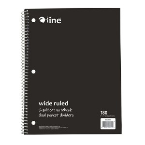 C-Line® 5-Subject Notebook, Wide Ruled, 180 Sheets, Assorted Colors | Instantly create writing space in binders and folders, by inserting the Spiral-Bound 5-Subject Notebook. Perfect for students and professionals, these notebooks feature a durable cover that helps protect the content written on the pages inside. Wide ruled format: the bright white paper has blue handwriting lines with a red margin divider to allow for neat writing. Solid colored front cover adds style to notebooks, while also making it easy to organize projects or classes by color. Attach this 3-hole punched spiral notebook into a standard 3-ring binder to create the ultimate organizational tool that keeps all your notes and hand-outs in one place. Perforated edges reduce paper waste by allowing pages to tear out neatly. 180-page spiral bound notebook with 4 dividers keeps subjects organized. Colored front cover, gray board back cover. Sold individually in assorted colors (no color choice).