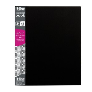 C-Line® Bound Sheet Protector Presentation Book, 24-Pocket | Present your report, project or artwork in style with this presentation book. Features twenty-four bound-in clear top-loading polypropylene sheet protectors that lie flat while the book is open. Storage pocket on inside front cover holds extra materials. Clear-view spine insert is reversible for instant customization. Acid-free. Black.