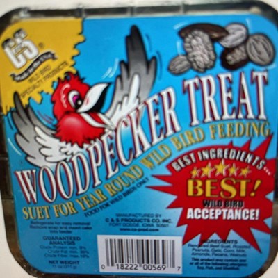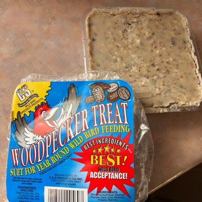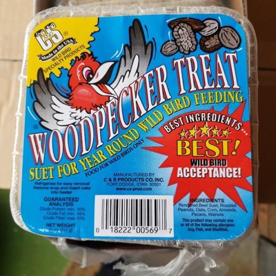 C&S Suet Treat Wild Bird Food is perfect for year round wild bird feeding. The high energy fat base is a quick and easy source of energy for the birds in your yard. C&S's quality and special processes allow suet to be fed year round resulting in summer suet feeding success by our consumers. Refrigerate for easy removal. Remove wrap and insert into suet feeder.