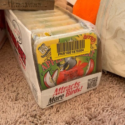 [This review was collected as part of a promotion.] This suet is higher quality than most I've tried so far. It comes in a pack of 12 and are easy to hang. It has more fat than I'd like for it to have but the birds don't seem to mind.