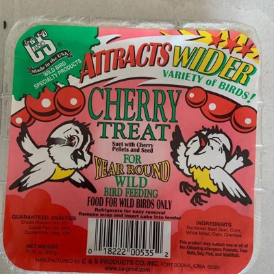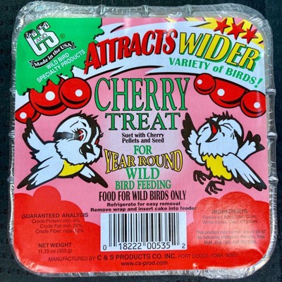 C&S Suet Treat Wild Bird Food is perfect for year round wild bird feeding. The high energy fat base is a quick and easy source of energy for the birds in your yard. C&S's quality and special processes allow suet to be fed year round resulting in summer suet feeding success by our consumers. Refrigerate for easy removal. Remove wrap and insert into suet feeder.