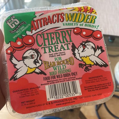 [This review was collected as part of a promotion.] This cherry suet will be perfect for my outdoor birds. The price is great for the value, and it is so easy to put this in my suet feeder and bring some happiness to birds!