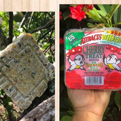 [This review was collected as part of a promotion.] I’ll be honest I picked the cherry version for myself lol. But the birds definitely seem to be enjoying these more fruited suet versions so i’m happy. The struggle is keeping the squirrels away, they love it too. But once they get at it i’ll be gone in a day.