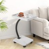 C-Shaped Side Table with Wheels - 360° Rotating End Table with 2-Layer Storage