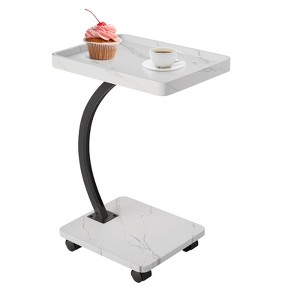 Introducing the versatile C-Shaped Side Table with Wheels, the perfect addition to your living room, bedroom, or any small space. Crafted from durable wood, this stylish TV tray table combines functionality and modern design to enhance your home. Its unique C-shaped structure allows it to slide effortlessly under sofas or chairs, making it an ideal space-saving solution for narrow corners and compact areas.