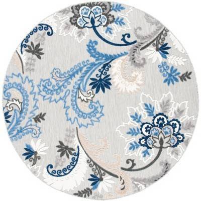 Cabana CBN305 Power Loomed UV Resistant Indoor/Outdoor Area Rug - Grey/Blue - 6'7" Round - Safavieh