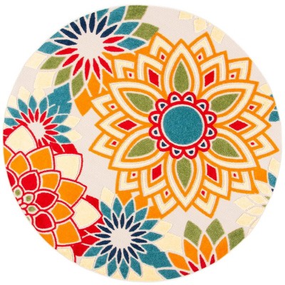 Cabana CBN328 Power Loomed UV Resistant Indoor/Outdoor Accent Rug - Ivory/Orange - 3' Round - Safavieh