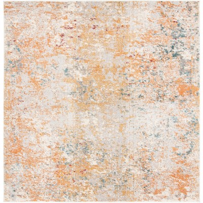 Cabana CBN328 Power Loomed UV Resistant Indoor/Outdoor Area Rug - Ivory/Orange - 6'7"x6'7" - Safavieh