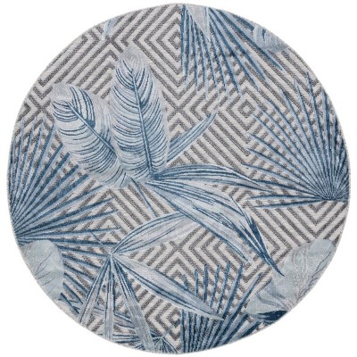 Cabana CBN451 Power Loomed UV Resistant Indoor/Outdoor Area Rug - Aqua/Ivory - 6'5" Round - Safavieh