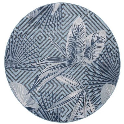 Cabana CBN452 Power Loomed UV Resistant Indoor/Outdoor Area Rug - Aqua/Navy - 6'5" Round - Safavieh