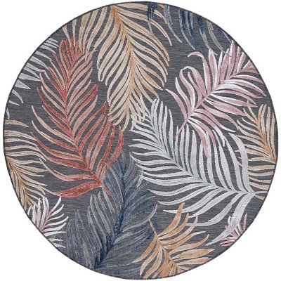 Cabana CBN452 Power Loomed UV Resistant Indoor/Outdoor Area Rug - Black/Grey - 6'5" Round - Safavieh