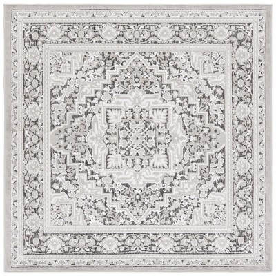 Add the perfect touch of Modern elegance to your space with this exquisite 6'-7" X 6'-7" Square Area Rug. Crafted in the exotic land of Turkey, using power loomed technique for precision, it boasts of an intricate iconic design rendered beautifully in a blend of Ivory and Grey tones. With a pile height of 3/8", this rug provides an inviting warmth and satisfying comfort underfoot. Constructed with a robust and high-quality Polypropylene, it ensures a long-lasting performance, retaining its exemplary aesthetics even with heavy foot traffic. Its tantalizing square shape lends a pulsating aesthetic dynamism to your interiors, making it an irresistible centerpiece in any room. To boot, it embodies health and safety standards being OEKO-TEX certified. Embrace this piece that seamlessly merges style, durability and quality, and experience the magical allure it brings to your decor!