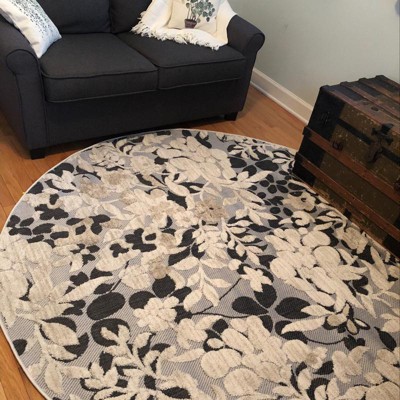 Cabana CBN672 Power Loomed Indoor Area Rug - Ivory/Charcoal - 6'7" round - Safavieh
