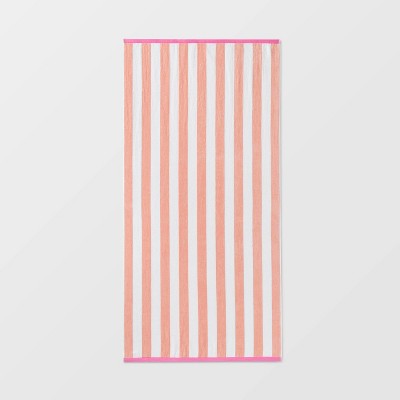 Product Name: Cabana Stripe 100% Cotton Pool and Beach Towels - Oversized, Absorbent, Quick-Dry Towels - Becky Cameron, Coral, Pack of 4