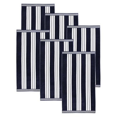 Get ready for fun in the sun with the Blue Nile Mills Cabana Stripe Oversized Cotton Beach Towel. This premium towel is the essential upgrade for your summer towels collection. Woven from soft 100% Cotton, these oversized beach towels are designed for superior performance. The material is reversible, featuring a soft velour side perfect for lounging and a highly absorbent terry loop side. This construction ensures quick dry towels performance while being durable and perfect for beach towels for adults use. Choose the ideal size for your family, from a single towel to a complete 6-piece bundle.