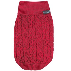 Wrap your dog in warmth and style with the 'Cable Knit Sweater' in vibrant red from Parisian Pet. This sweater offers a cozy and classic cable knit design, making it a perfect choice for chilly weather. Ideal for small to medium dogs, this sweater ensures comfort and warmth during walks or lounging at home. Its classic red color adds a cheerful and stylish touch to your dog’s wardrobe. Key Features: