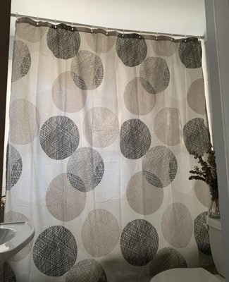 [This review was collected as part of a promotion.] This is the perfect addition to our guest bathroom. The MadisonPark Knowles shower curtain has a mix of tans, browns, black and whites which makes this a very versatile curtain for any color or decor. The circles are a nice pattern that is not too busy for a smaller bathroom since they are mixed with both light and dark colors. The fabric is thin and washes and dries without any shrinking. The top where hung has a reinforcement to give that extra strength. Our guests love this curtain and have complimented it quite a few times.