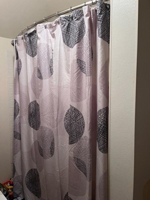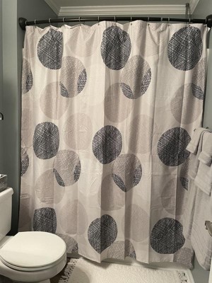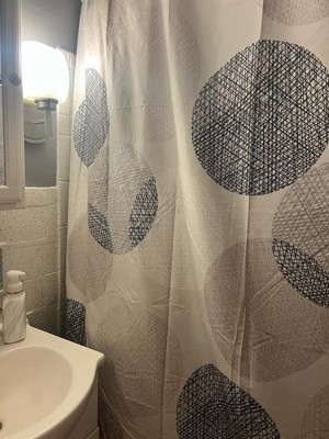 [This review was collected as part of a promotion.] I love the pattern on this shower curtain, as well as how it hangs. It's thin, but not too sheer. And the pattern on it is lovely. The circles are not too bold and they overlap on some places.