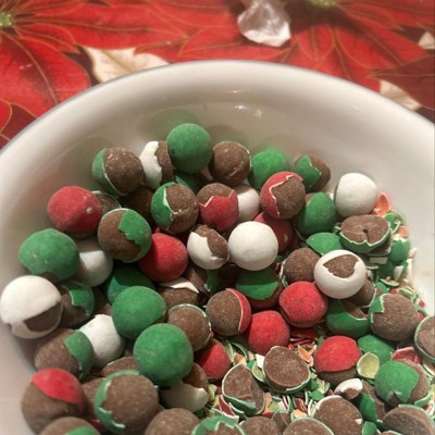 Look no further for the perfect holiday candy than CADBURY Mini Snowballs candy. These kosher milk chocolate snowball-shaped candies are coated with crisp sugar shells in seasonal red, green and white colors, making them the perfect addition to stockings, Christmas candy bowls, Christmas tree presents and seasonal decor. They make it easy to fill lunch boxes, snack cabinets and movie night snack collections with delicious holiday candy everyone will love. Stuff your party favors with small bags of these milk chocolate candies to treat yourself and those closest to you with a delectably crunchy, smooth candy. Preparing for a gift exchange with friends, family or co-workers? Nothing could be better for the occasion than CADBURY Mini Snowballs milk chocolate candies, which are the perfect size to place inside a gift bag or personalized stocking. Everyone involved in the party will want you as their secret Santa next year when they find out what your delicious gift is. If you want to mix it up even more this holiday season, try giving your favorite brownies, cupcakes, cookies or pies a bit of a crunch by topping them with premium chocolate snowballs candy. Just don't forget to save a few candy pieces for yourself during all that sharing.